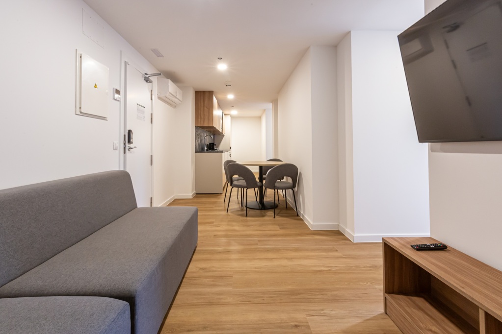 The modern and well-thought-out design of the spaces is intended to foster both privacy and interaction. Our Four Bedroom Apartments offer the ideal combination of private rooms and a welcoming common area for shared stays in Madrid.