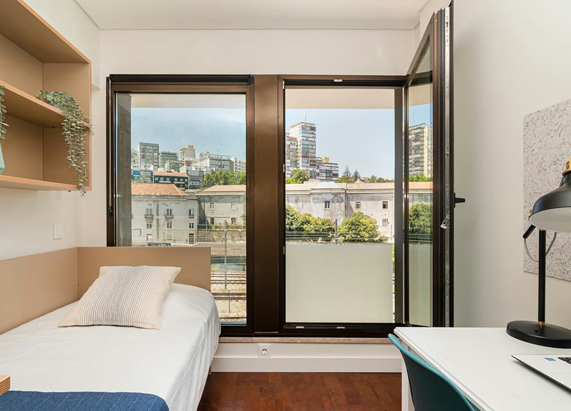 We offer modern rooms and studios, social spaces, a private gym, a terrace with a stunning view, and an outdoor pool overlooking the Tagus River 🏊♀️🌊. Close to universities and the nightlife 🌃. Would you like to be part of our community? Book a visit now and see your future home in Lisbon! 👋