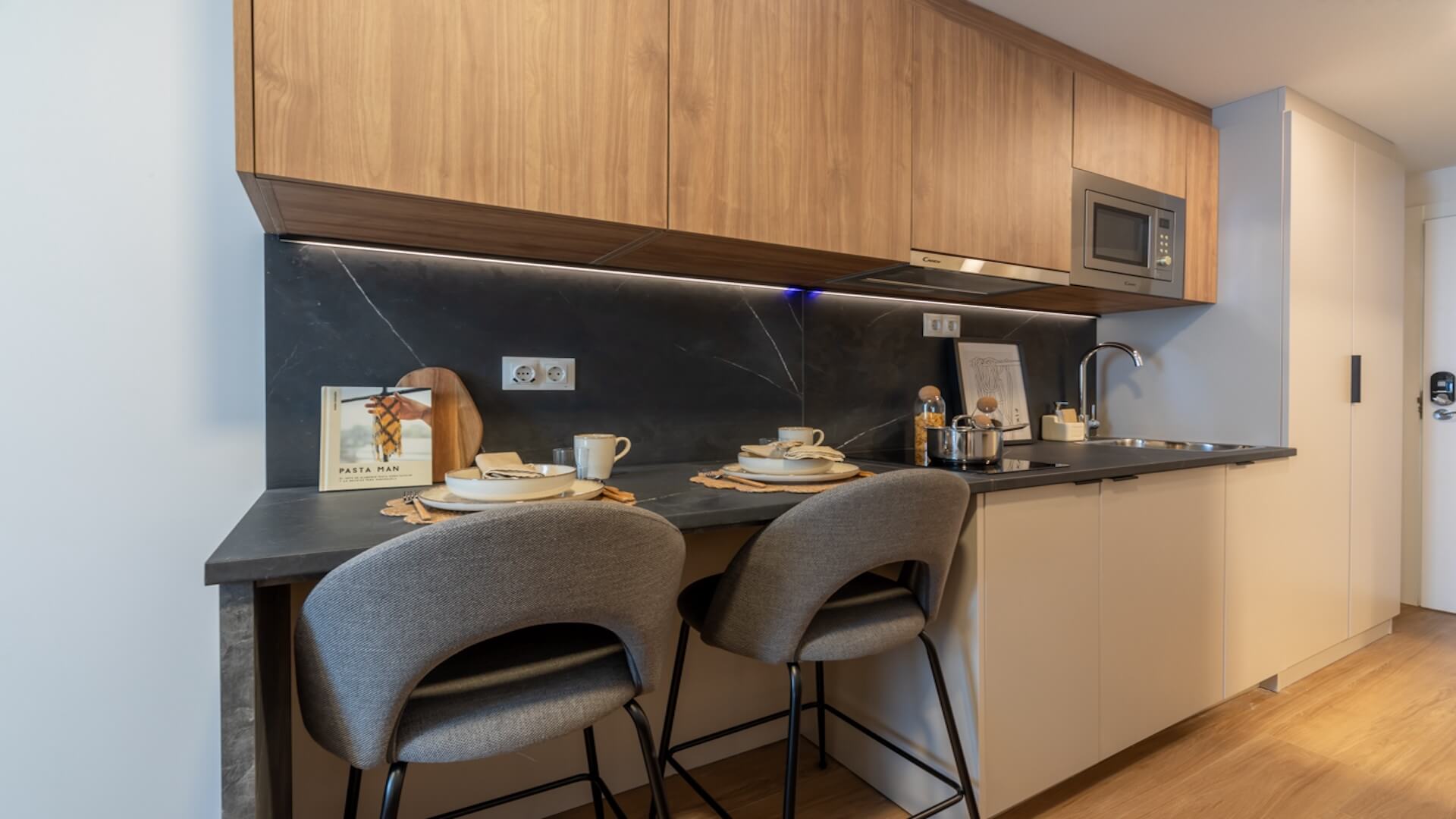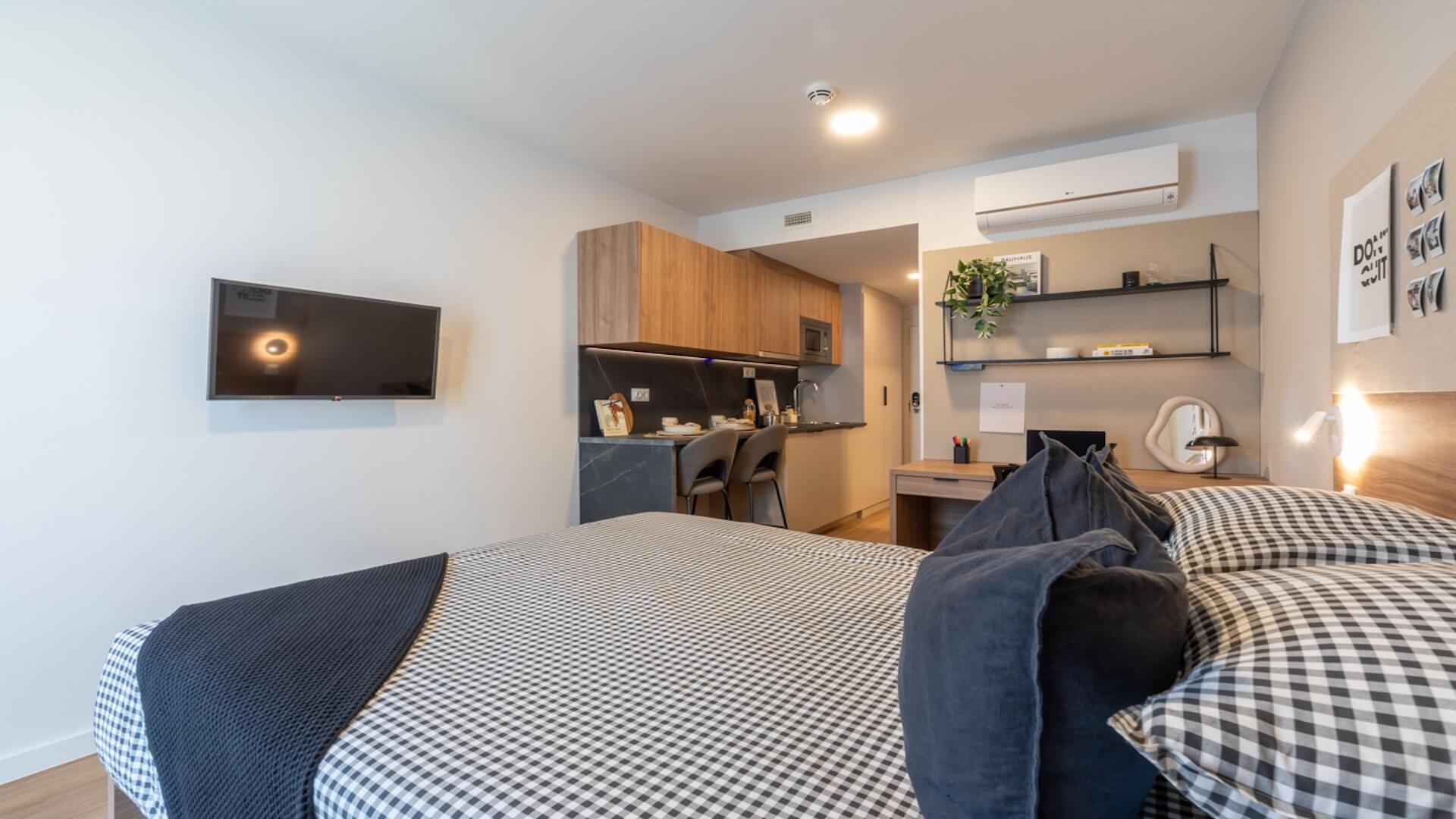 Our spacious Classic Studios at Nido Príncipe Pío have their own kitchenette and private ensuite bathroom. Each studio is 19 – 22 m2 and can be found on floors 1, 8 and 11. With their in-room facilities, these studios are perfect for those who prefer to have their own private living space, but want to enjoy access to our common spaces & events - so socialising won’t be a problem.