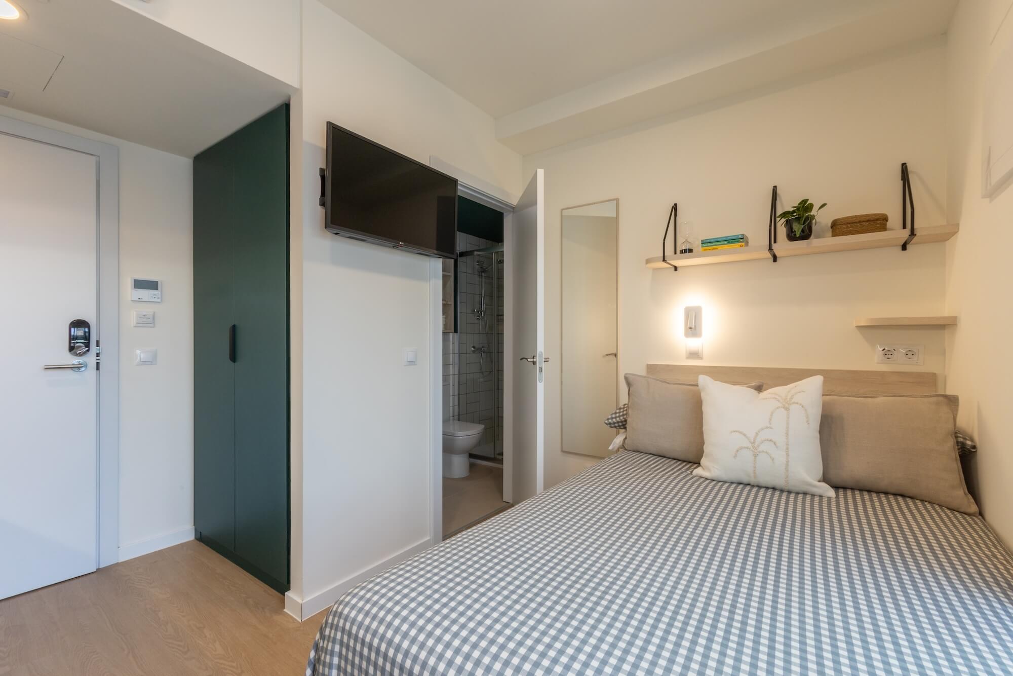 Nuestras habitaciones son ideales si te gusta tener tu propio espacio, organizado a tu manera. Aún puedes utilizar todas nuestras zonas comunes y asistir a nuestros eventos, así que hacer amigos no será un problema. Tienes lo mejor de ambos mundos.