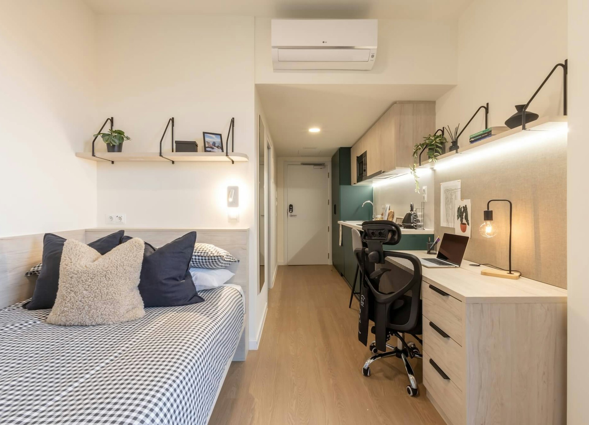 Nuestras habitaciones son ideales si te gusta tener tu propio espacio, organizado a tu manera. Aún puedes utilizar todas nuestras zonas comunes y asistir a nuestros eventos, así que hacer amigos no será un problema. Tienes lo mejor de ambos mundos.