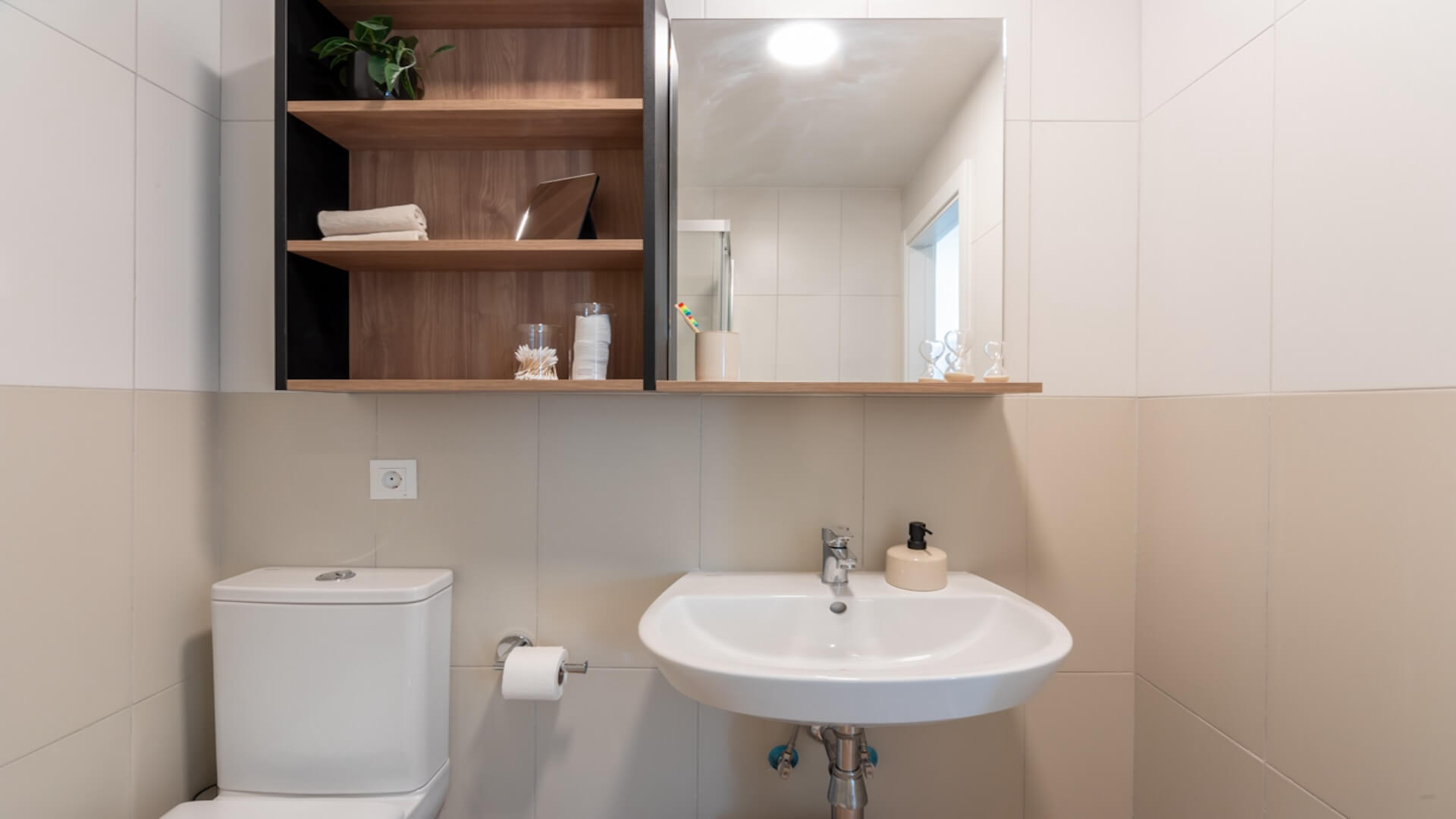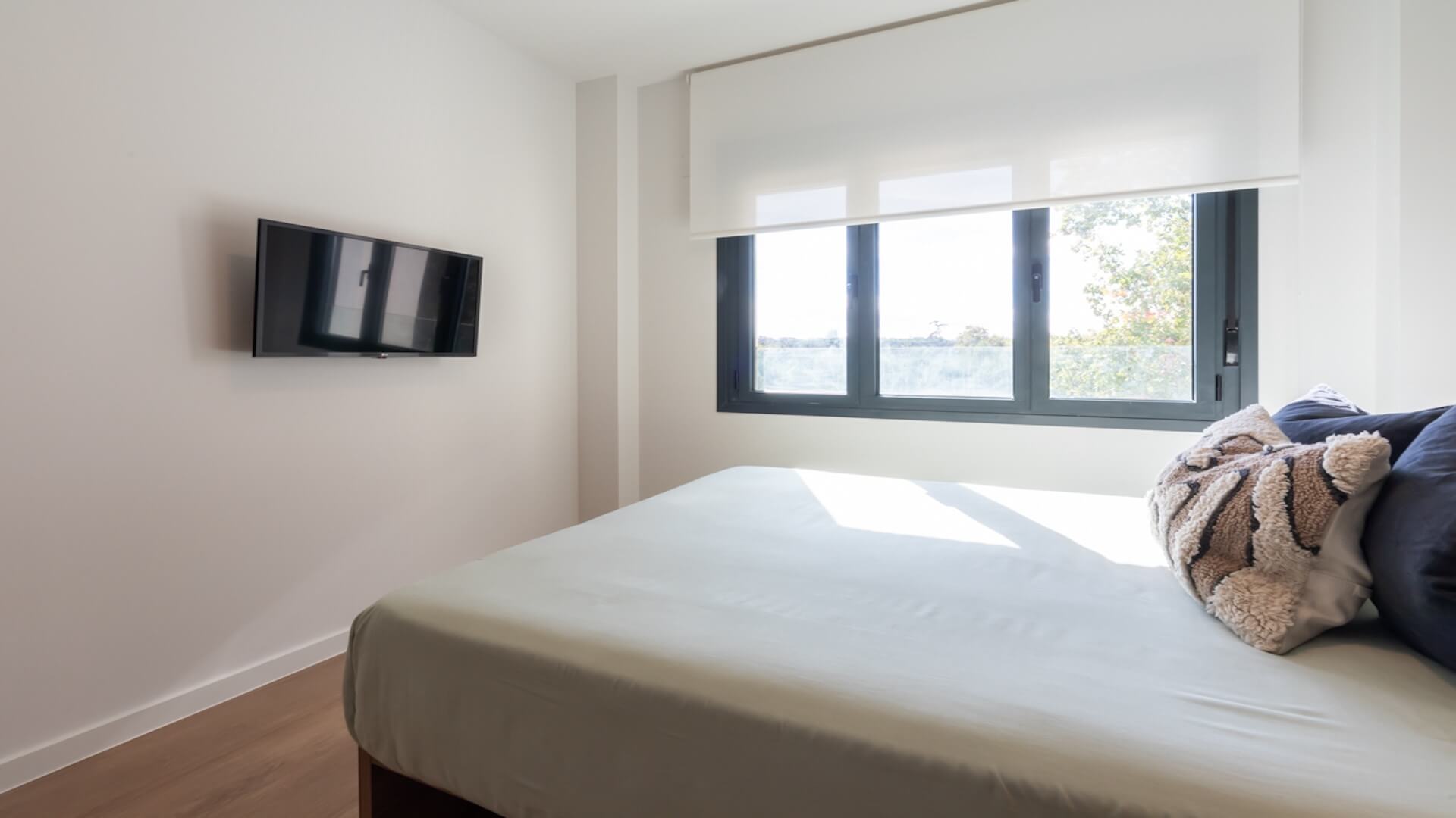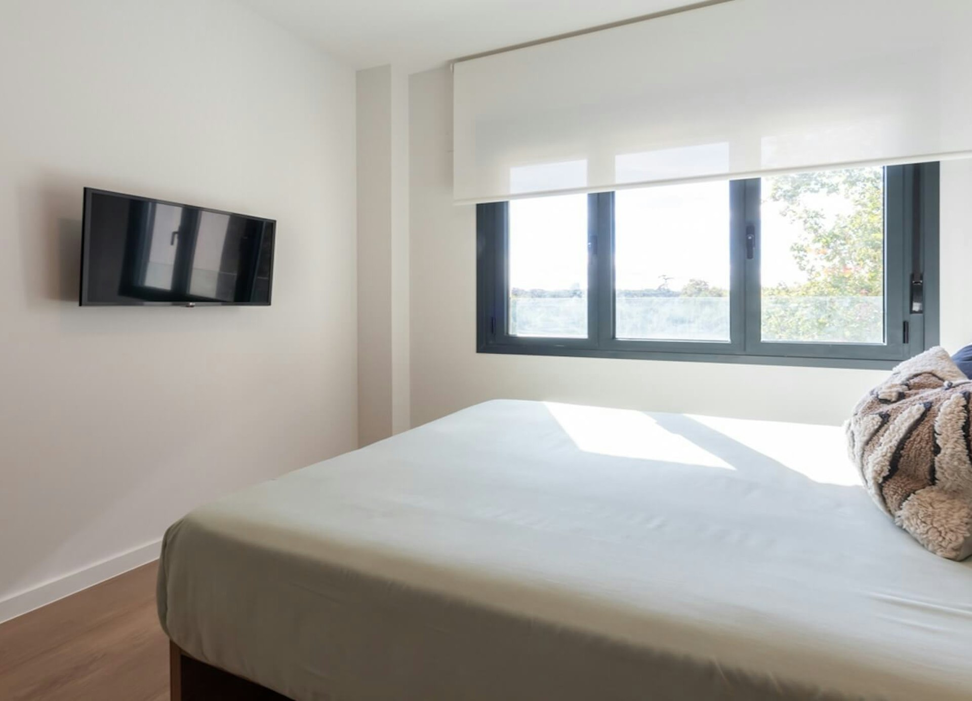 Cada habitación cuenta con una cama doble compacta 105-135cm, escritorio con silla, armario con estantes, espejo de cuerpo entero y un baño privado. El espacio de estar compartido incluye una cocina totalmente equipada con nevera-congelador, fregadero, cocina, microondas, horno y mucho espacio de almacenamiento, además de una mesa y sillas de comedor, cómodos sofás y un televisor de pantalla plana. Seguirás teniendo acceso a todos nuestros espacios comunes y podrás asistir a todos nuestros eventos, por lo que hacer amigos no será un problema. Tendrás lo mejor de ambos mundos.