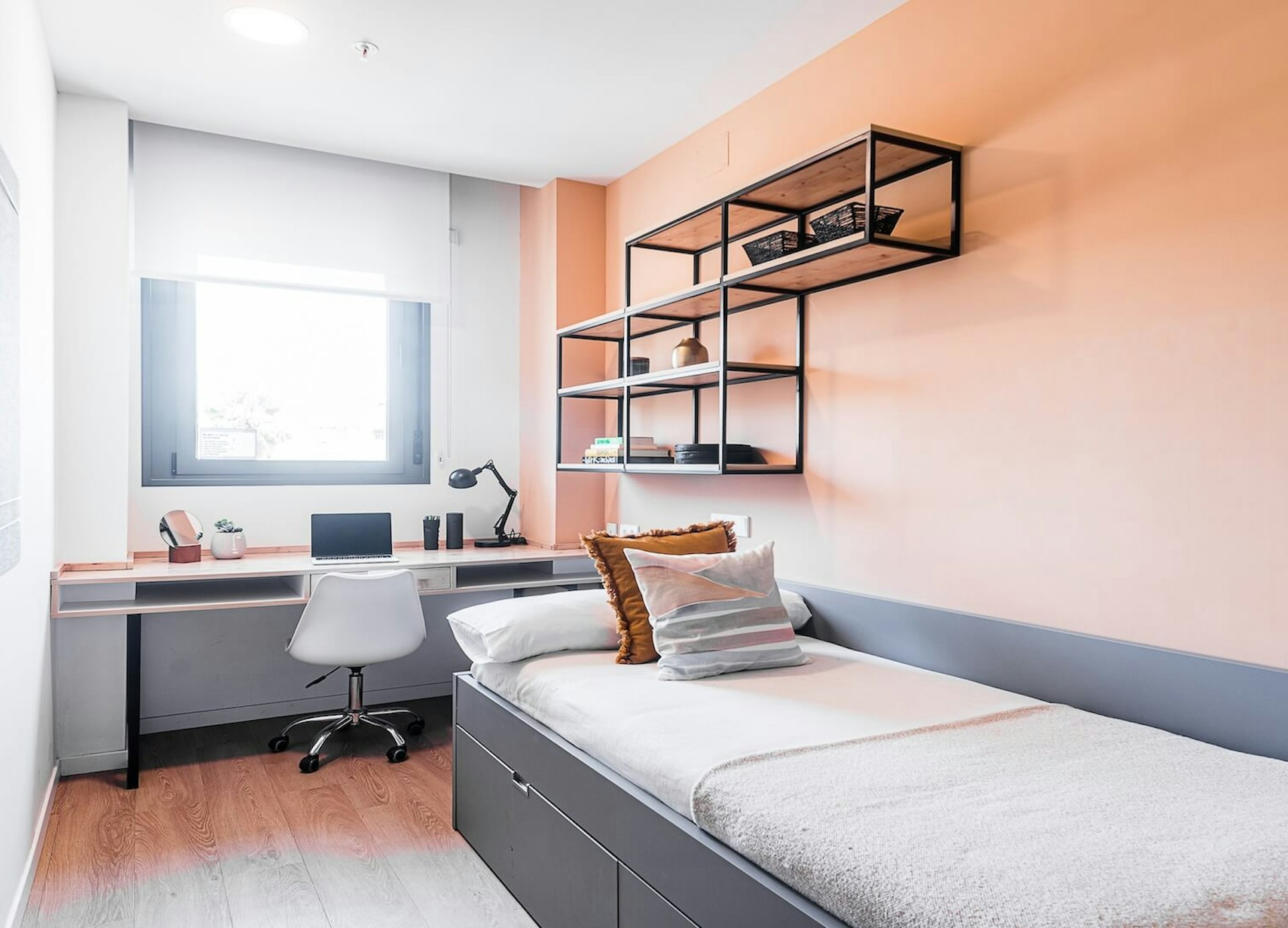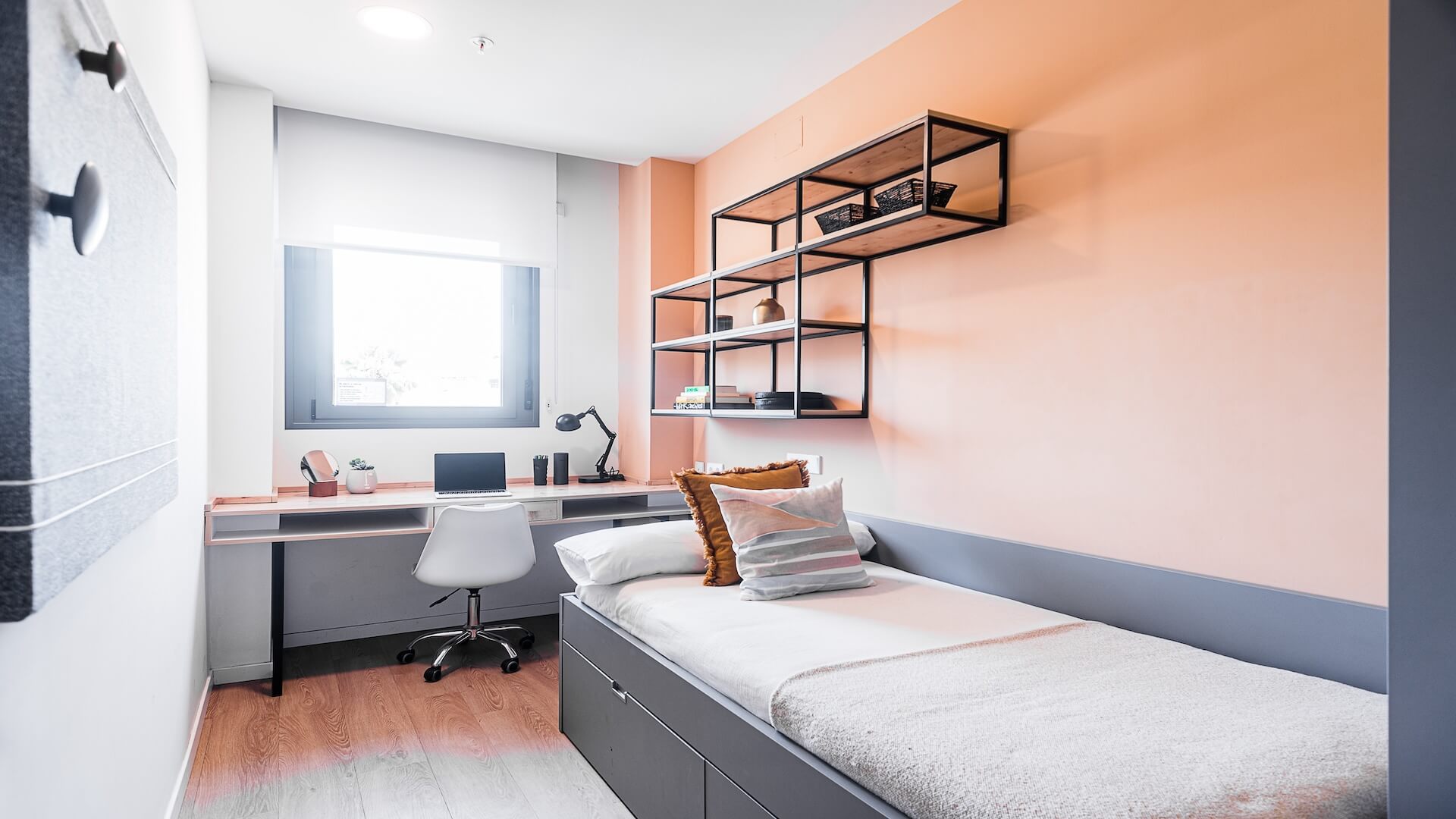 Nuestras habitaciones son ideales si te gusta tener tu propio espacio para dormir y estudiar, pero prefieres compartir solo con otras dos personas. Reserva con un amigo o haz uno nuevo. Además, puedes usar todas nuestras zonas comunes y unirte a nuestros eventos, así que hacer amigos no será un problema. Aquí tienes lo mejor de los dos mundos.