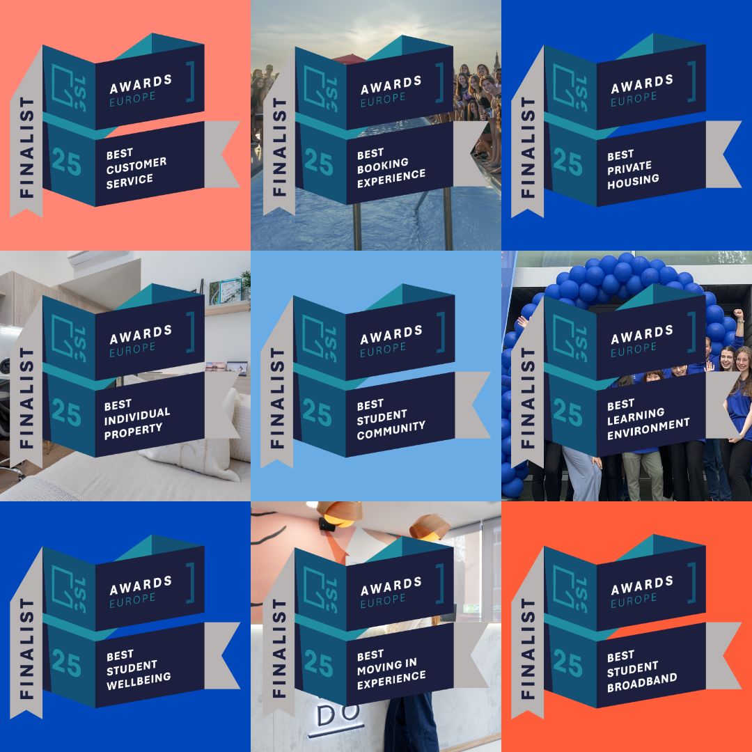 Ganadores del premio a la Best Private Housing Europe 2023. Los premios son votados por más de 100.000 estudiantes a través del Global Student Living Index.
