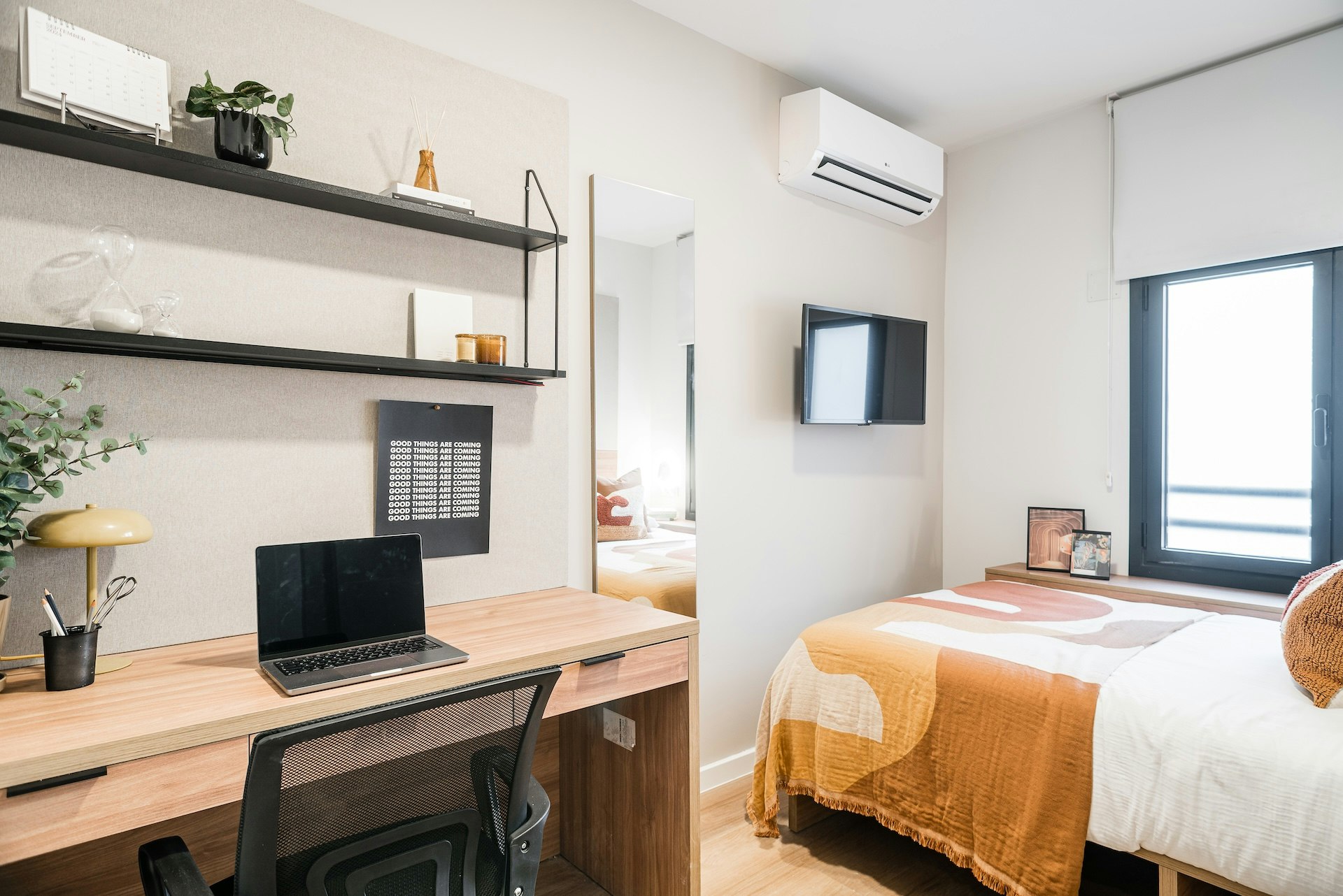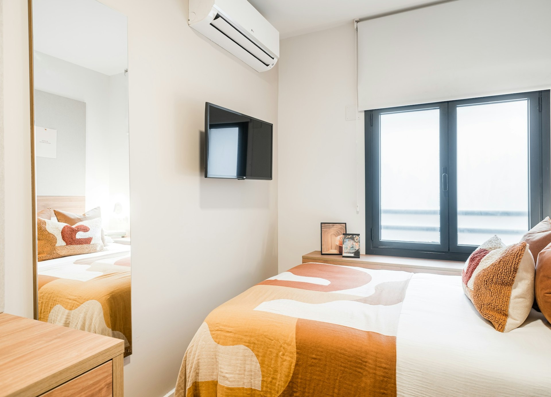 🏙️ City life meets comfort at Nido Príncipe Pío ✨ Swipe through to check out our cosy 2-bed Classic Room, complete with a comfy bedroom, private bathroom, and a modern kitchen + living space – perfect for chilling or getting your work done. 🛏️🛁🍽️