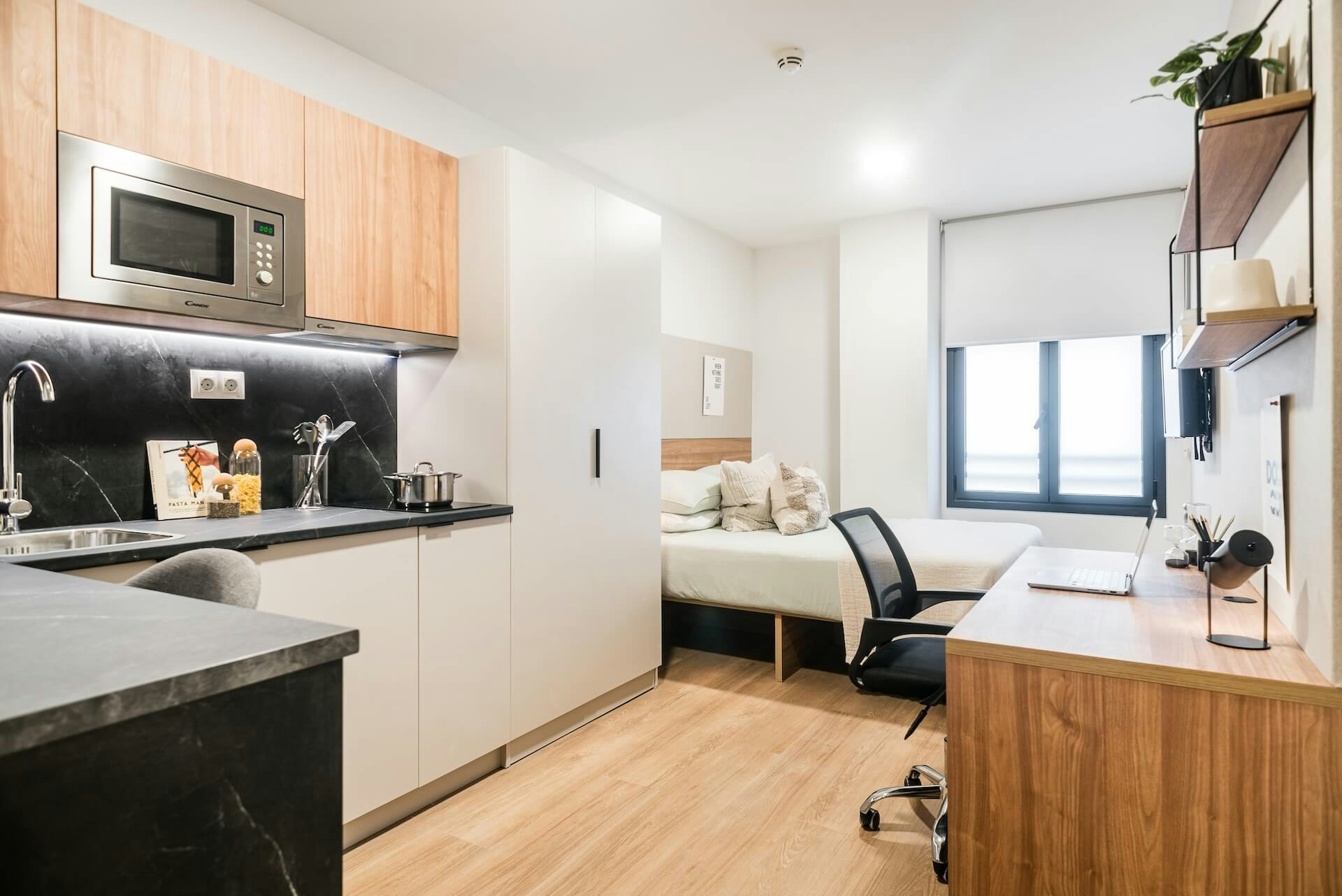 🏙️ City life meets comfort at Nido Príncipe Pío ✨ Swipe through to check out our cosy 2-bed Classic Room, complete with a comfy bedroom, private bathroom, and a modern kitchen + living space – perfect for chilling or getting your work done. 🛏️🛁🍽️