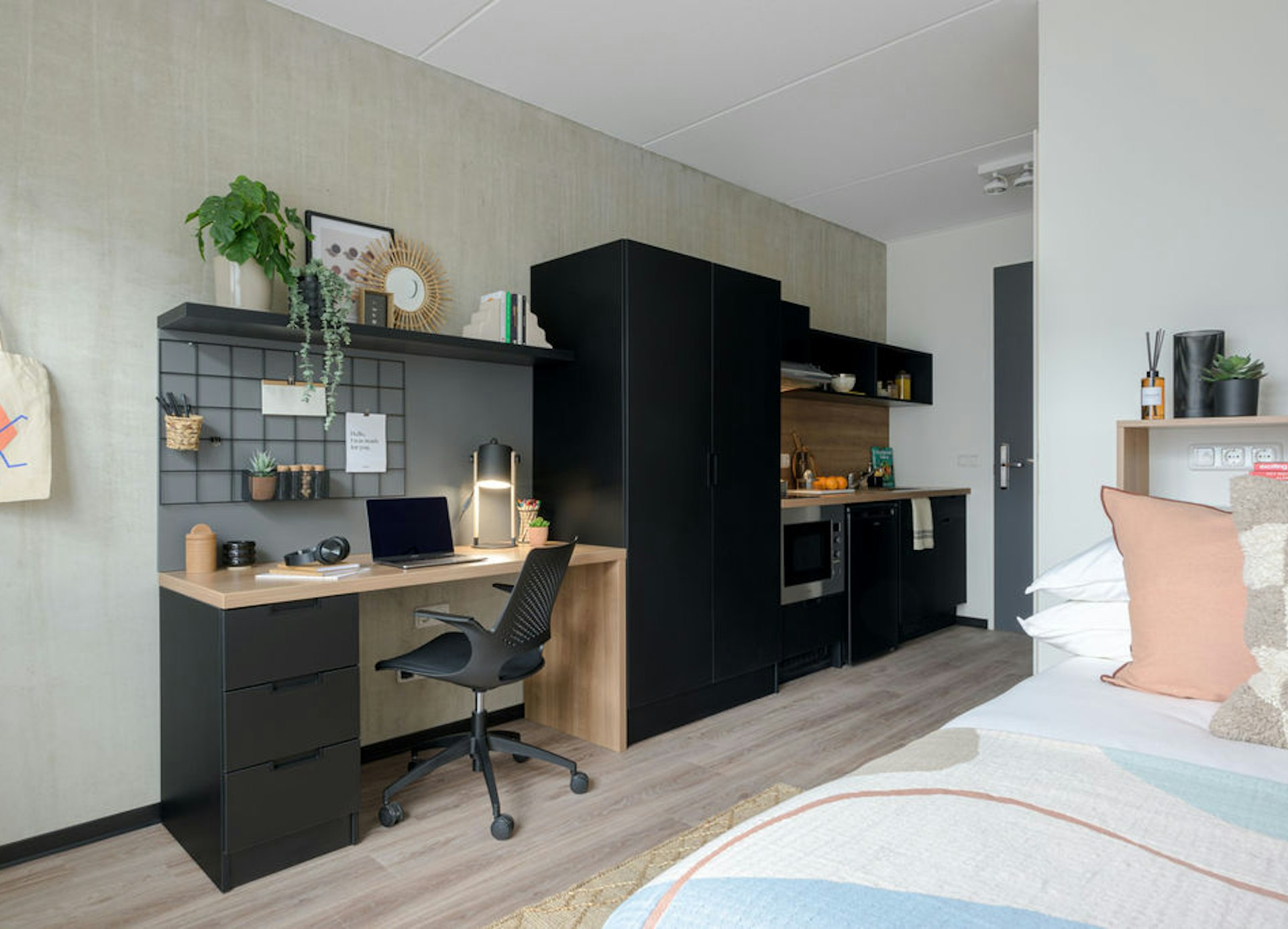 Os nossos estúdios clássicos em Nido Randwyck estão localizados em todo o edifício e têm uns espaçosos 19m2. Foram concebidos para que tenha a privacidade do seu próprio quarto e casa de banho privativa, além da sua própria kitchenette totalmente equipada, para que possa manter o seu espaço tal como gosta. Pode ainda desfrutar da atmosfera movimentada da vida partilhada, pois Nido Randwyck tem muitos espaços sociais e de estudo.