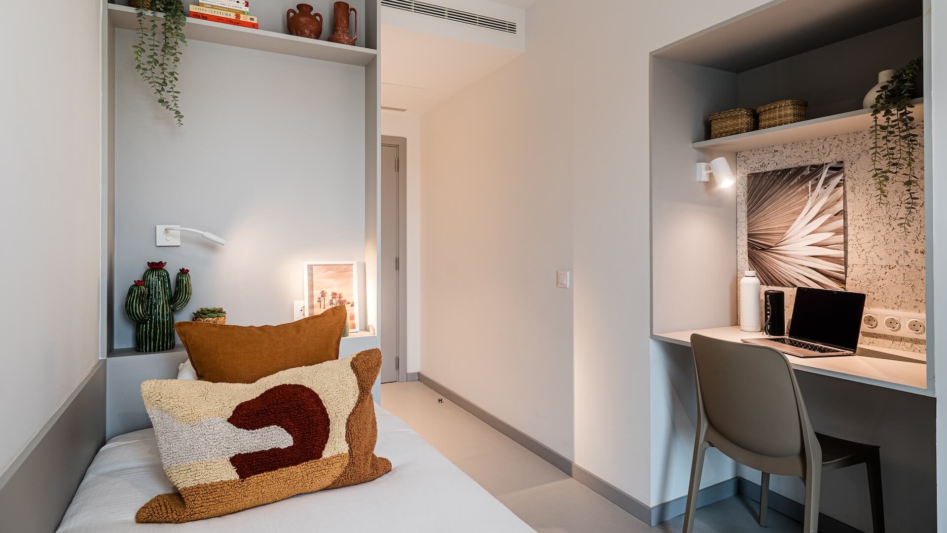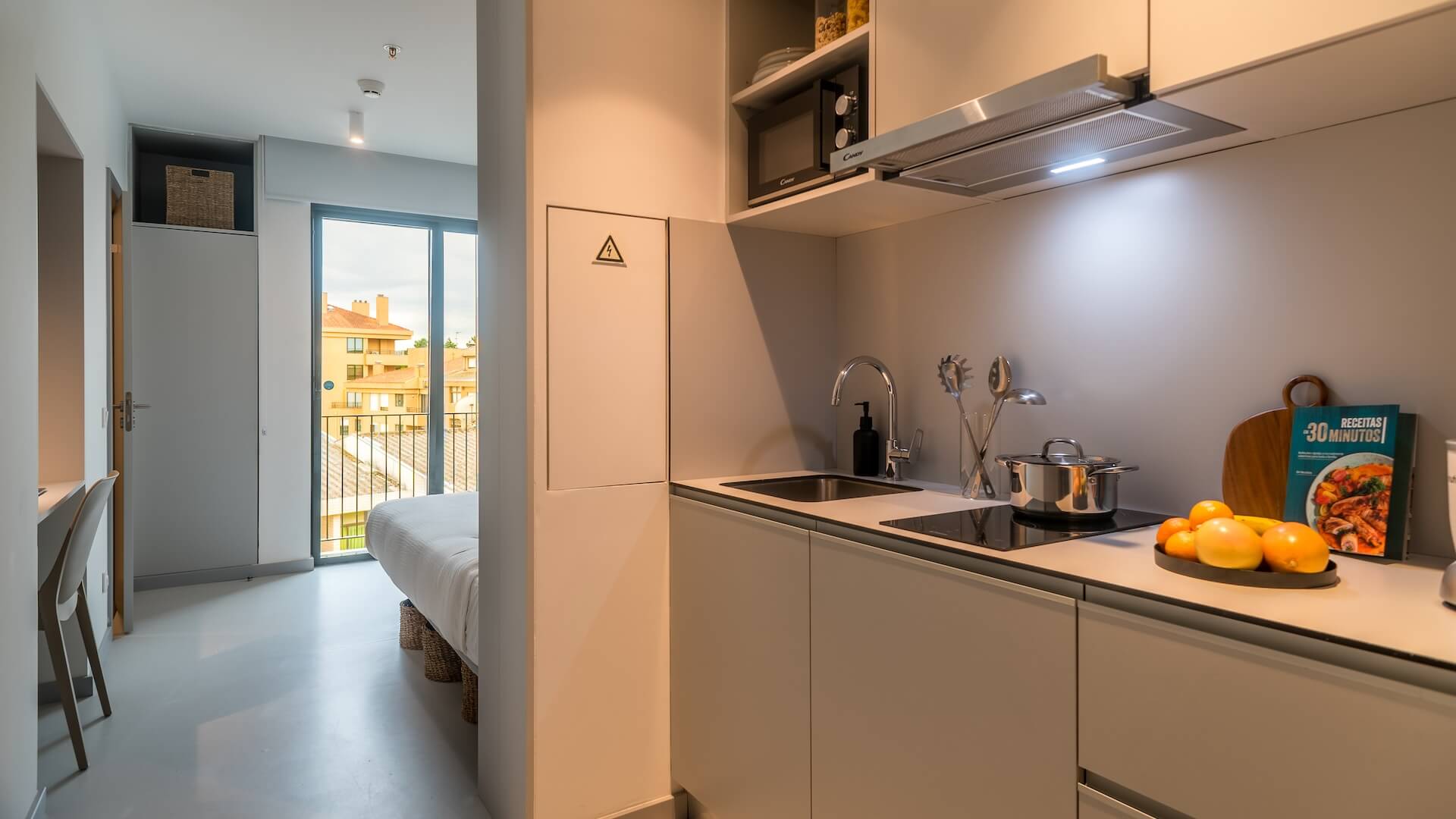 Os nossos estúdios Classic Plus são concebidos para ocupação individual, têm 14.5m2 e estão localizados no quarto e quinto pisos. Cada estúdio/apartamento inclui uma cama de solteiro, secretária de estudo e cadeira, roupeiro com prateleiras, casa de banho privativa e uma kitchenette.