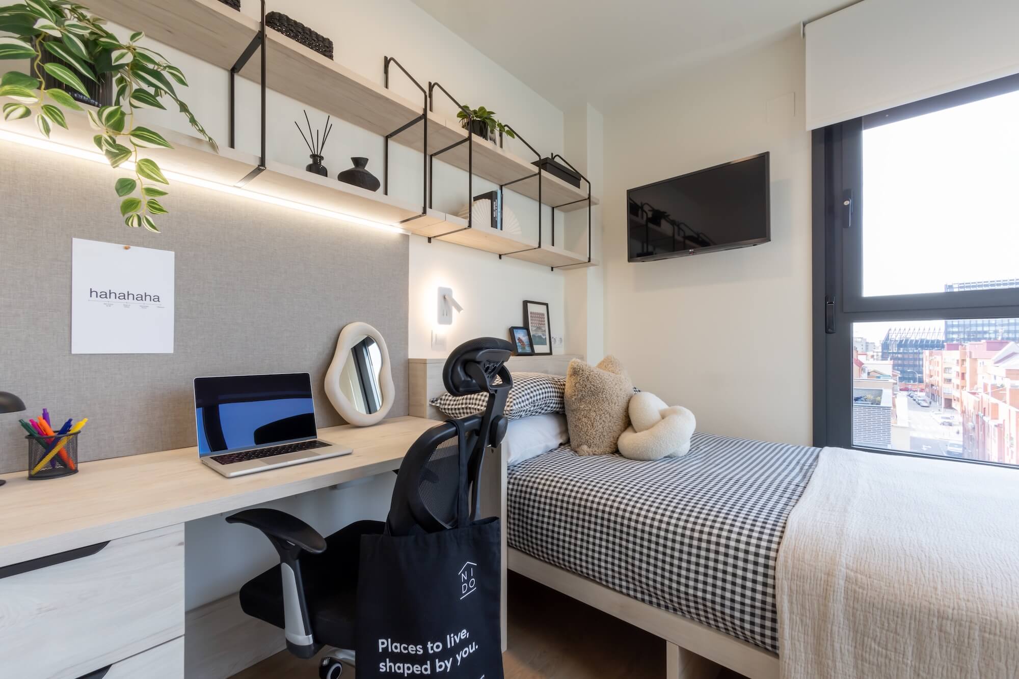 Encontra o quarto estudantil perfeito 🛌 na Nido Plaza Castilla. Com 12 tipos de quartos diferentes, há algo para todos os gostos - todos com casa de banho privativa 🛁 para ainda mais conforto.