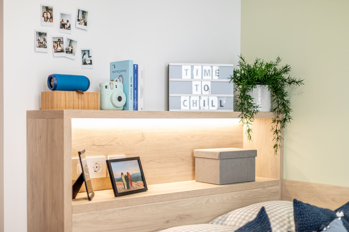 Podes escolher entre vários tamanhos de quarto e pisos na residência para criares o teu lar ideal.